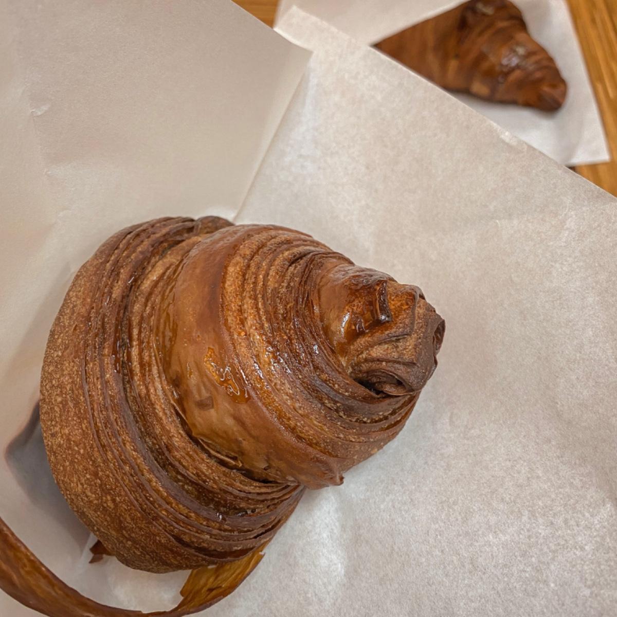 一大口咬下去卡滋卡滋卡滋,超酥脆的外皮,第一次吃到真的一層層堆疊出來的口感可頌,尤其是使用伊斯尼發酵奶油的可頌,奶油香氣濃郁奔放卻又不厚重,老饕拜託真的一定要去嚐嚐!(跟八月堂或小花的可頌是完全不同的滋味)