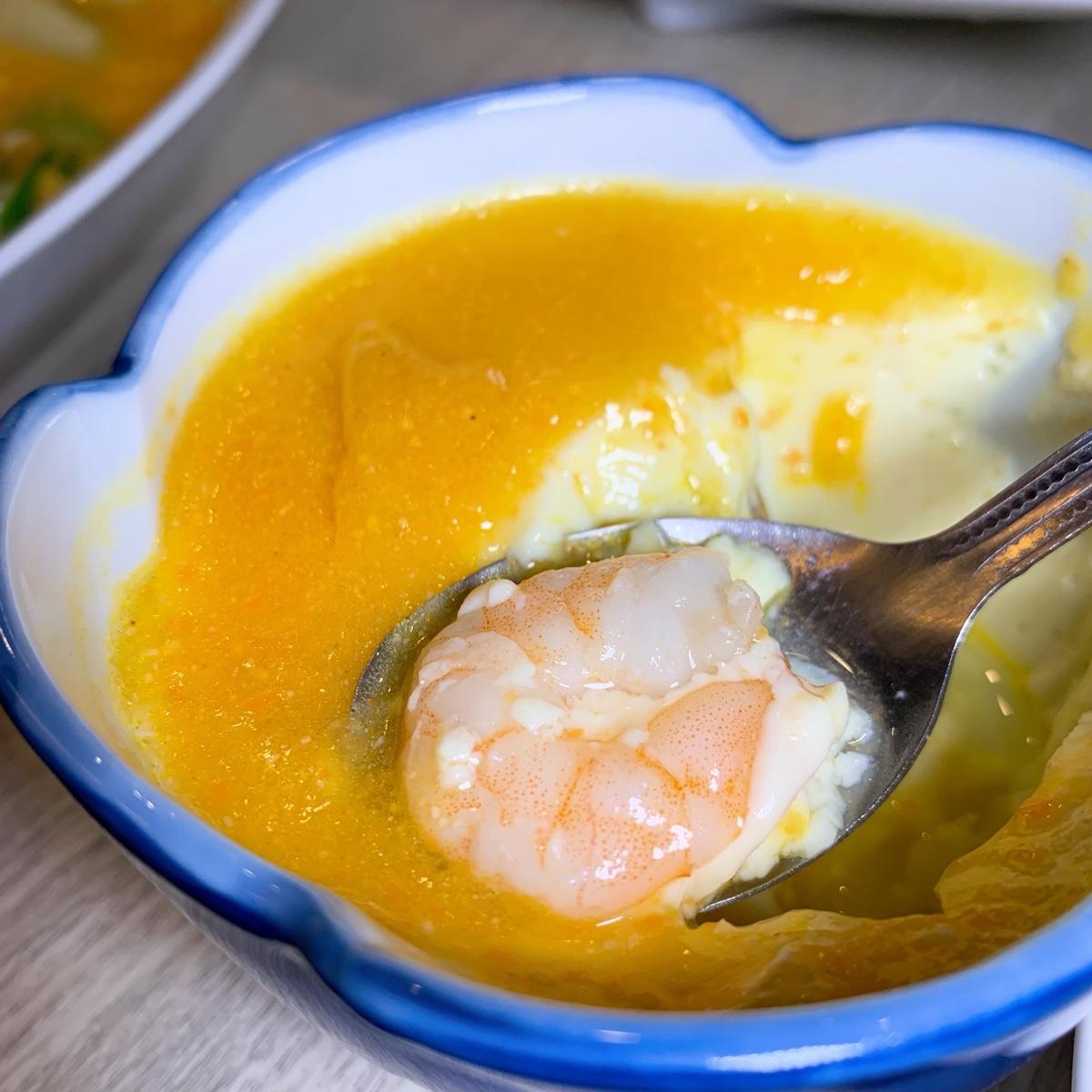 我點👉黃金烏魚子炒飯(200元)、滿載粥(560元)、海鮮蒸蛋(50元)、蟹黃絲瓜(150元)、淮山野蓮(150元)、香酥黃金鯧魚(300元)