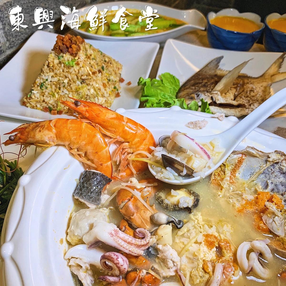 吃東興海鮮食堂,位於東興路上位置很明顯好找!食材使用、環境衛生我都打100分,第一次吃到這麼厲害的海鮮粥!