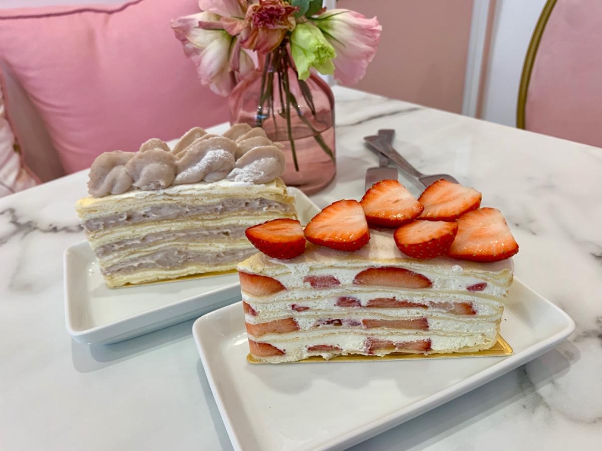 剛搬家不久的格外幸福變得好粉嫩、好少女🌸🌸去年沒吃到的草莓千層、芋泥千層今天很幸運的都吃到了🌟整體甜點口味大概落在2、3分糖左右🤣芋泥讚