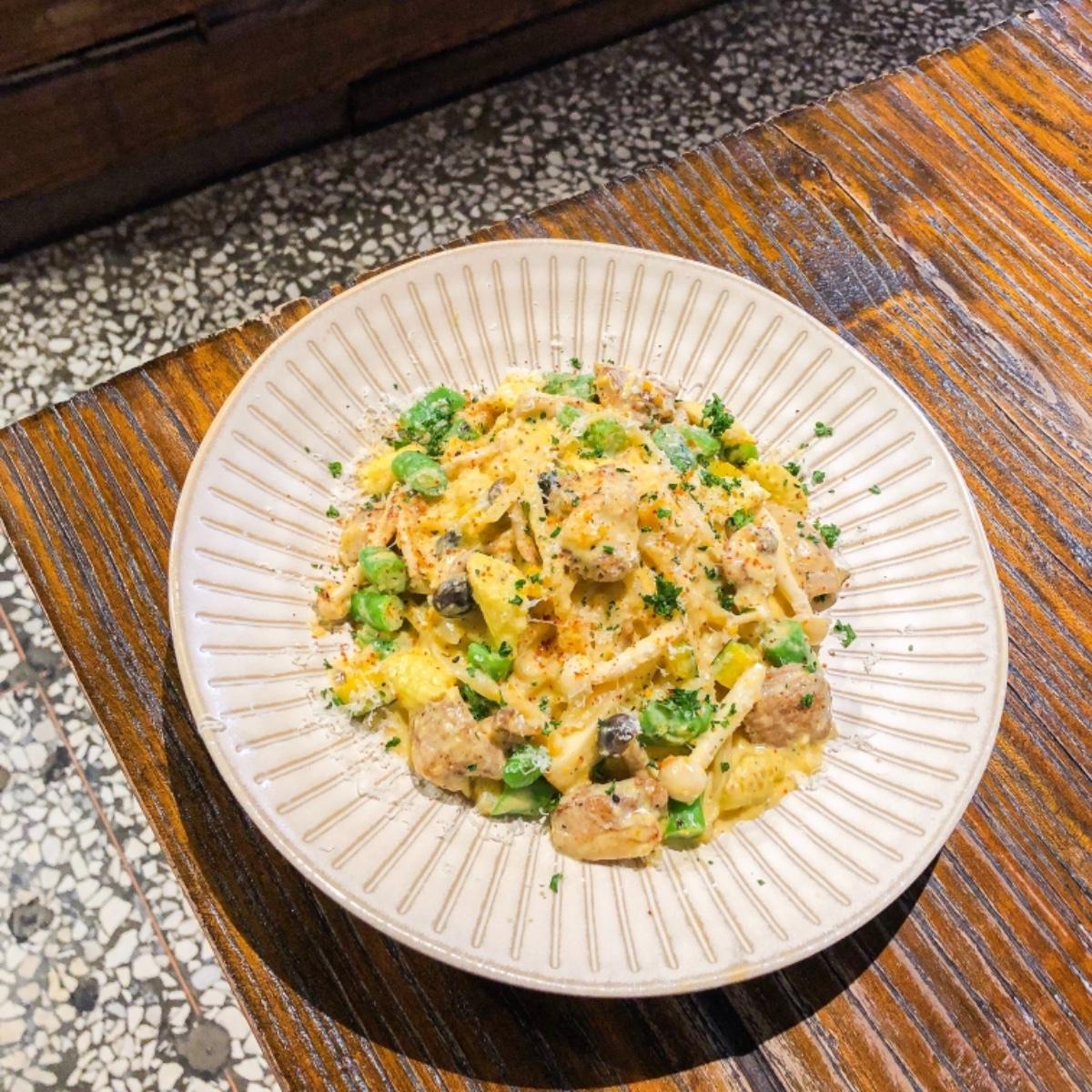 有別於前兩道,這項是清炒義大利麵,沒有什麼醬汁,義大利麵卻神奇地超級入味🤩剝皮辣椒的味道直接衝進味蕾,超級對我們嗜重口味者的胃,但是卻一點都不會覺得過於負擔或膩口。嚐起來很清爽又開胃,也是一個迅速解決!真的很特別啊這道料理❤️❤️