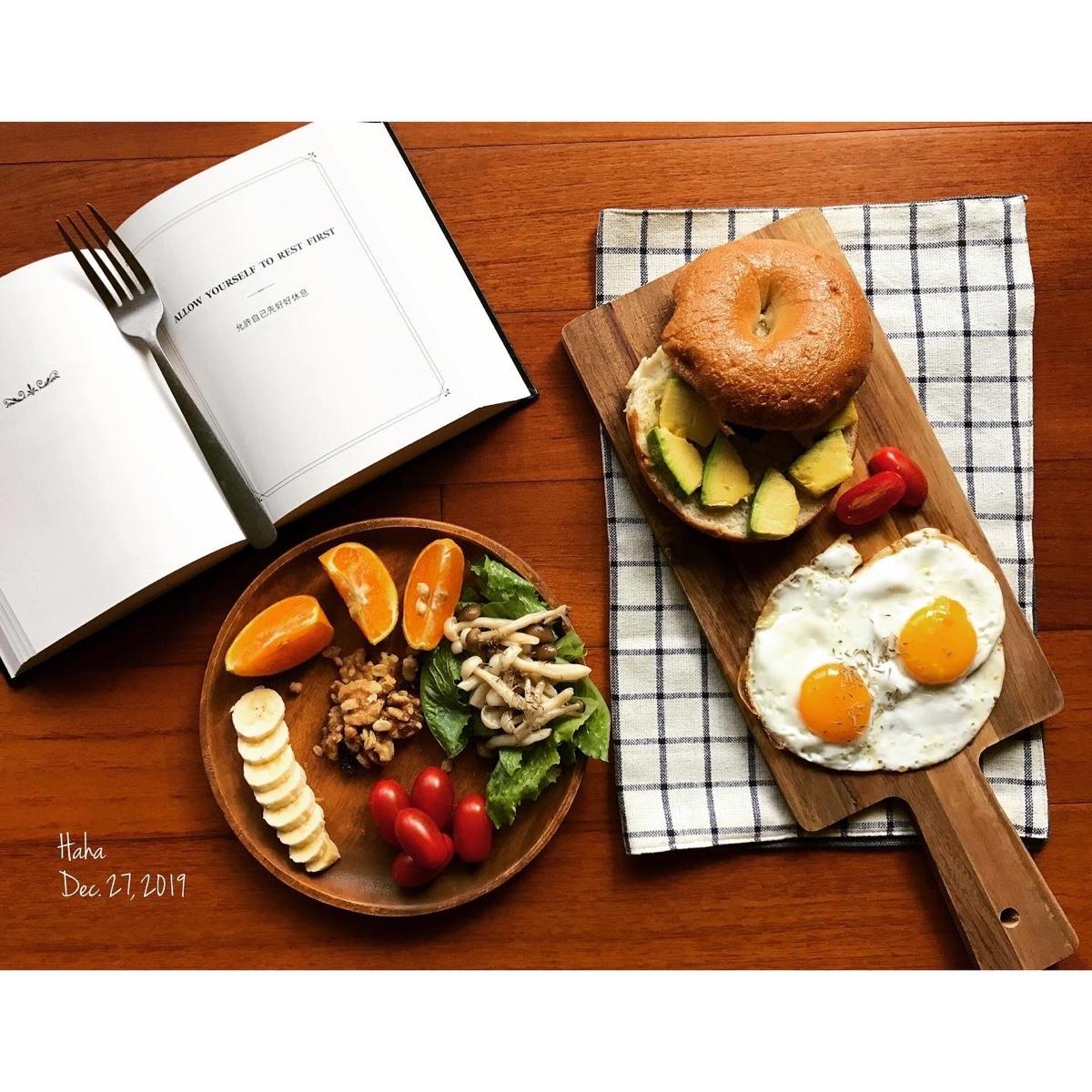 2019/12/27自製早午餐ing(酪梨貝果+雙蛋)靈感就邊用邊感受!