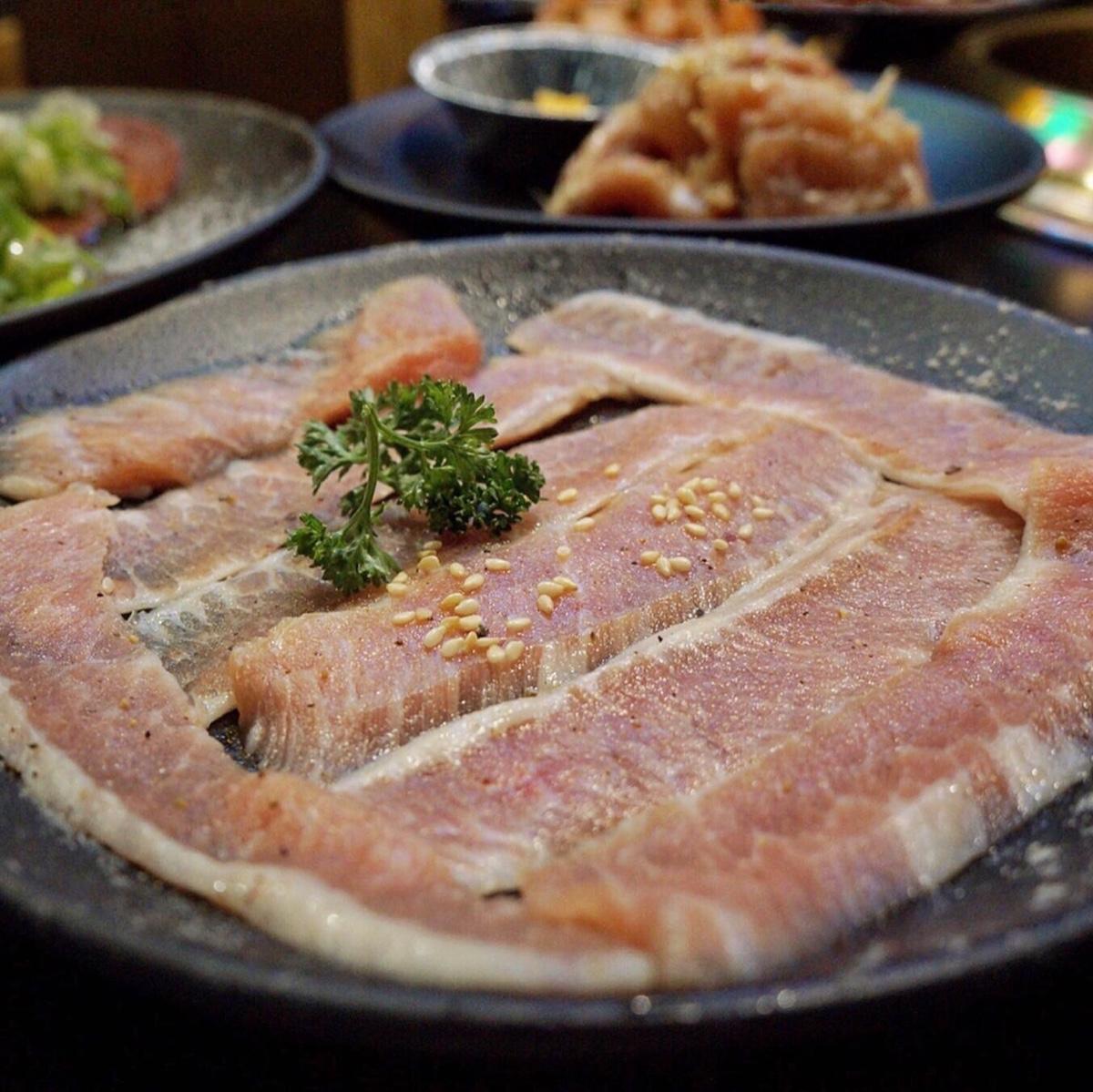 帶有厚度的美國牛肋條,帶有些微嚼勁的口感,和油脂完美交織✌,吃起來還有水分,蠻喜歡的。伊比利豬肋條🐷有「勞斯萊斯級豬肉」的稱號✨ 油脂十分豐富,帶點彈牙的口感,愈嚼愈香且無豬腥味。