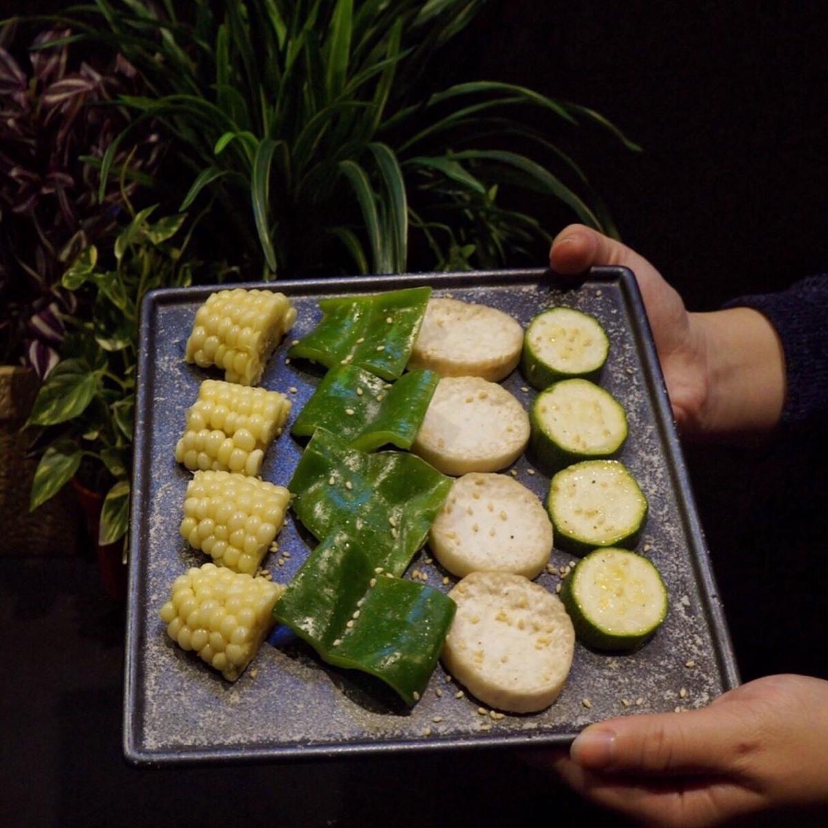 泡菜 / 美國牛肋條 / 伊比利豬肋條 / 牛舌 / 薄切牛小排 / 去骨雞腿肉 / 畜牲飯 / 綜合蔬菜 / 墨魚香腸 / 松阪豬
