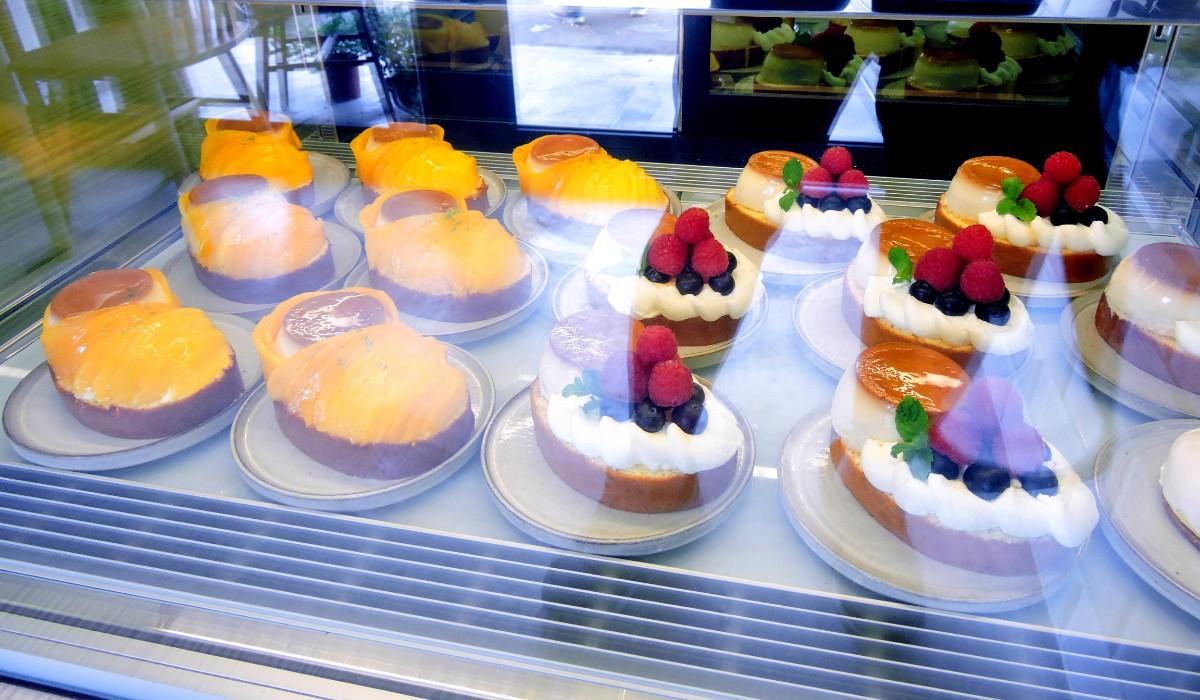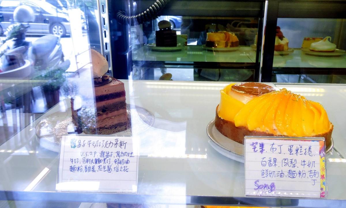 一開始賣的是布丁草莓蛋糕捲,後來因草莓缺貨,曾改以藍莓取代。鮮紅草莓跟藍莓、黑色覆盆子加上奶油,紅黑白三色疊加,酸酸甜甜,奶油不膩,布丁香濃還藏有香草籽。看似普普通通的蛋糕捲,口感卻是意外地綿密,包有內餡,一刀切開,層次分明,內餡軟綿好吃