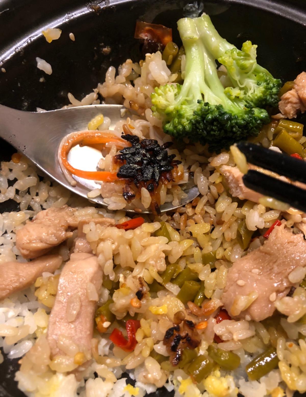 辣酸豆角+花雕雞柳+半熟蛋=110