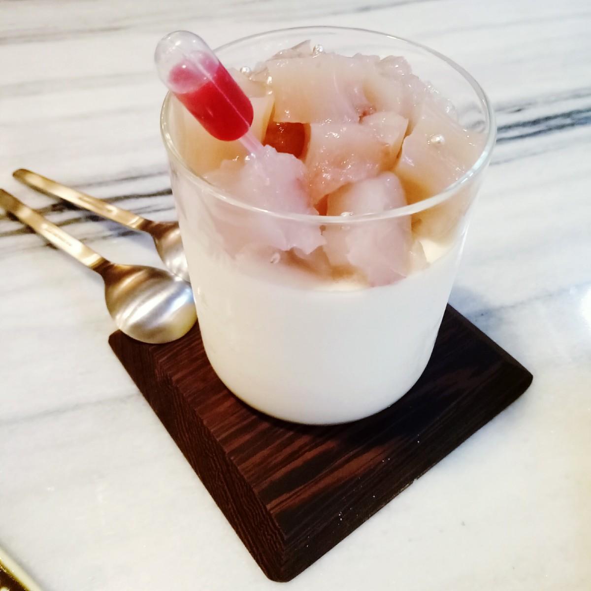 之所以會點艾瑪小姐,是因為她的外型,她是荔枝果肉跟奶酪的組合還有有機玫瑰花,吃起來讓人彷彿回到初戀般甜美。