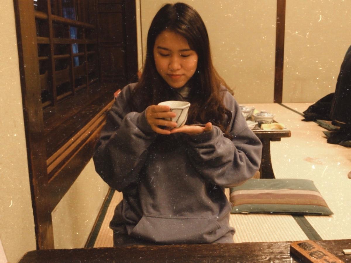 一入座就會先遞上熱毛巾跟熱茶,此次我們選擇的餐點是日式蒸蛋套餐,包含蒸蛋跟蒸壽司各一份,旁邊還會附一小盤白蘿蔔,價格落在日幣1400左右,並不便宜。