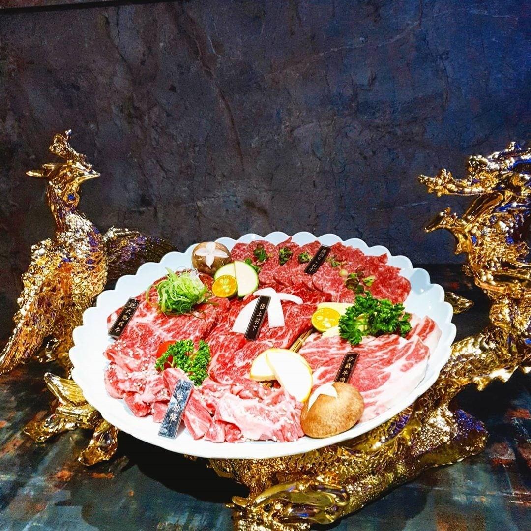 ( 肉品: 冷藏極上羽下,澳洲9+和牛。1855乾式熟成牛排,極上沙朗牛,安格斯牛肋條,經典梅花肉以及椒鹽黃金雞)
