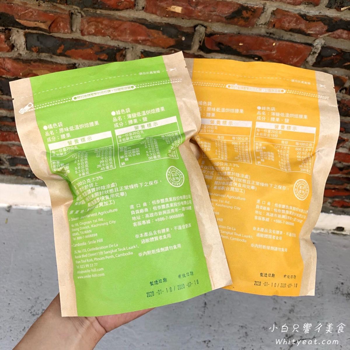 腰果採低溫烘焙,有兩種口味/包裝是密封袋設計