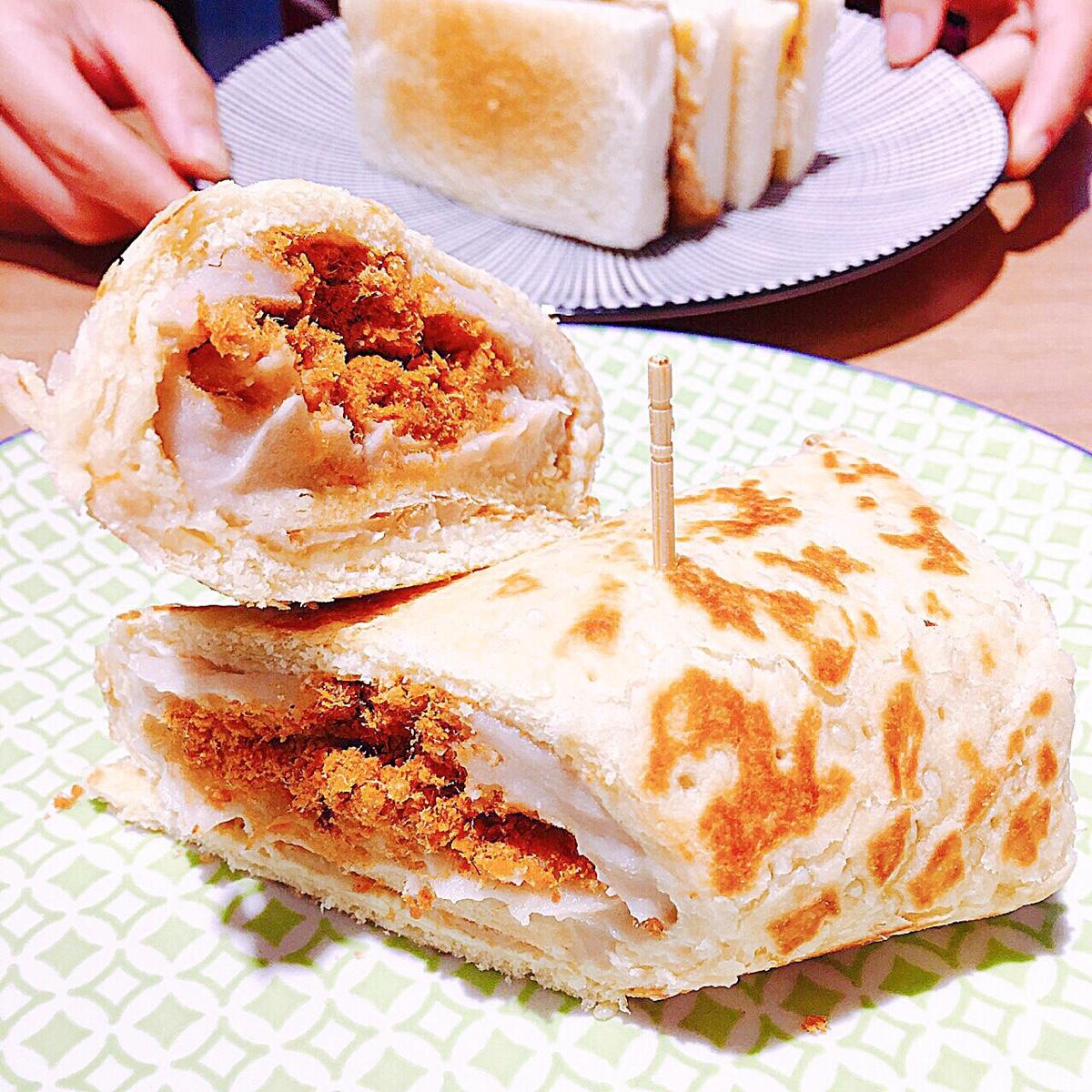 芋泥相當綿密也很飽滿,輕輕一咬芋泥餡就會爆出來,但不會太甜所以不用擔心會很膩口,搭上肉鬆吃起來鹹甜鹹甜的,蛋餅捲也別有一番香氣👍