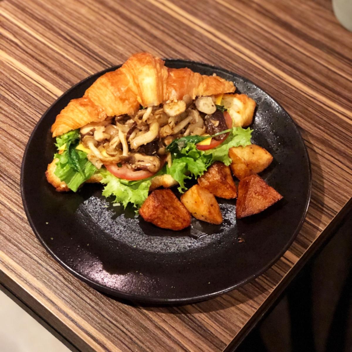 可頌處理的可以更酥一點,打拋雞很有特色,個人覺得值得一嚐,配可頌也很搭,整體鹹香夠味,不過配菜薯塊很乾硬柴😅