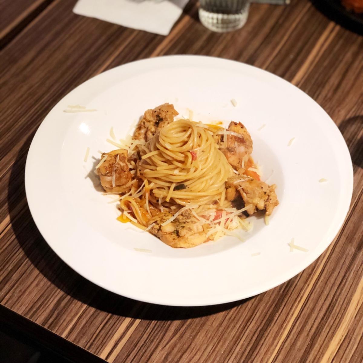 這道是我點的,對於不嗜辣的艾琳來說真的吃不消,認真辣到哭QQ味道很不錯我邊擤鼻子邊吃光XD雞肉很入味,辣味剛好能中和番茄甜,讓口感更豐富厚實,不過辣度如果再低一點就好了!