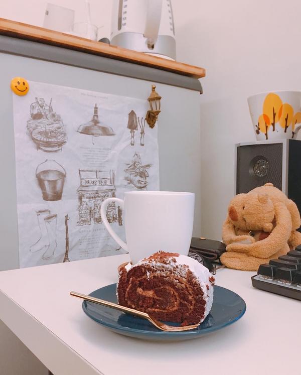 另外因為當天情人節的關係,拍照打卡上傳IG會送小禮物,蛋糕底層是乾乾的巧克力海綿蛋糕,配上濕潤的焦糖醬跟焦糖霜,口感和口味都非常的棒