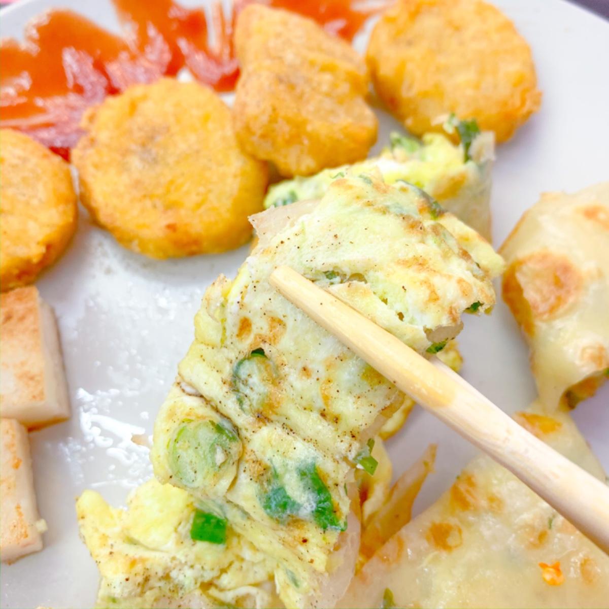 煎得有點酥酥的餅皮,搭上蔥蛋的內餡,餅皮的口感越嚼越香,搭上蔥蛋,整體味道非常古早味~👍❤️沾醬是老闆特調的蒜蓉醬油膏~味道很夠~喜愛吃辣的朋友可以請加一點老闆特調的辣椒,只要一點點就非常香辣夠味!😆