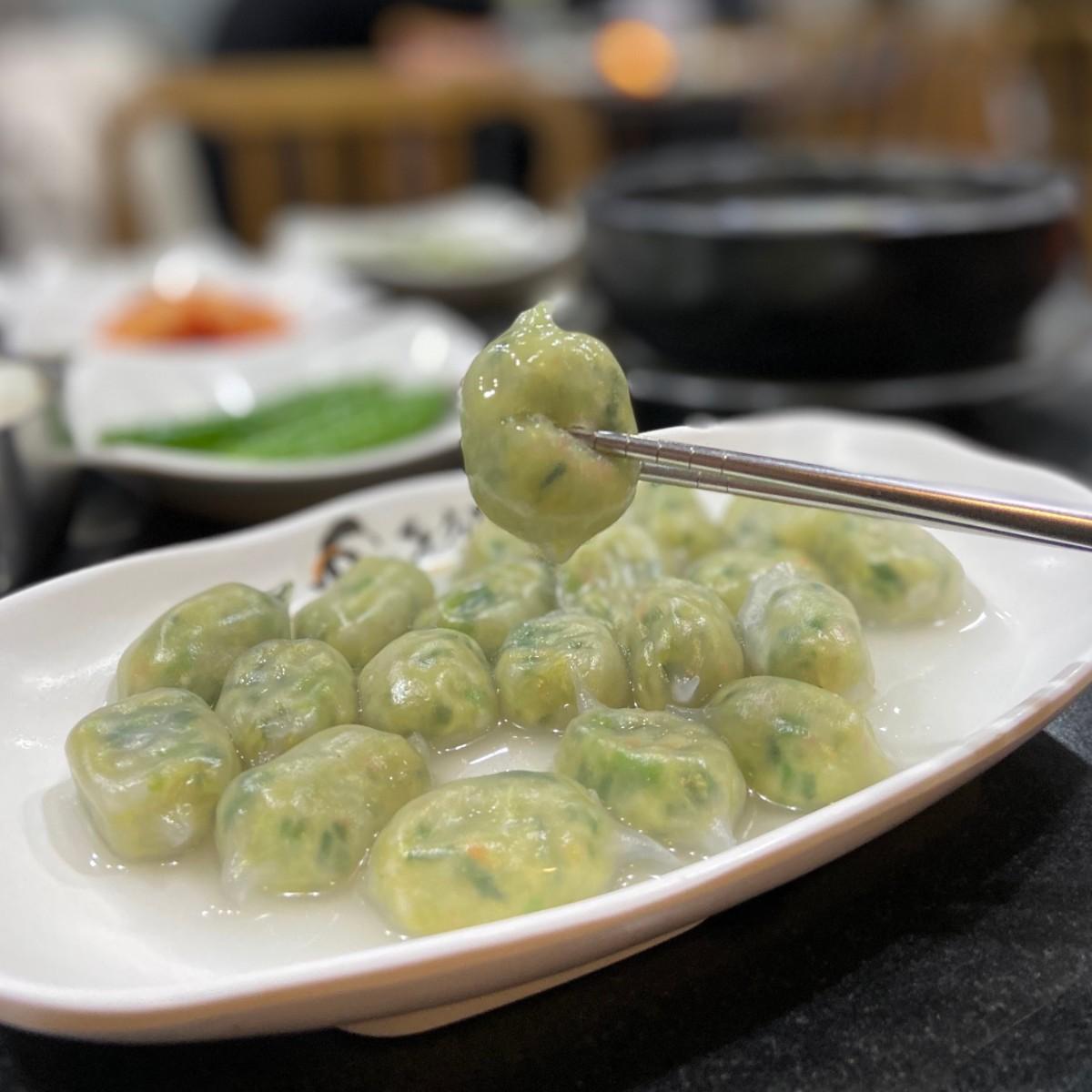 薄薄的皮內包著韭菜+絞肉,基本上很像較為濕潤的韭菜水餃,但味道也很不錯,