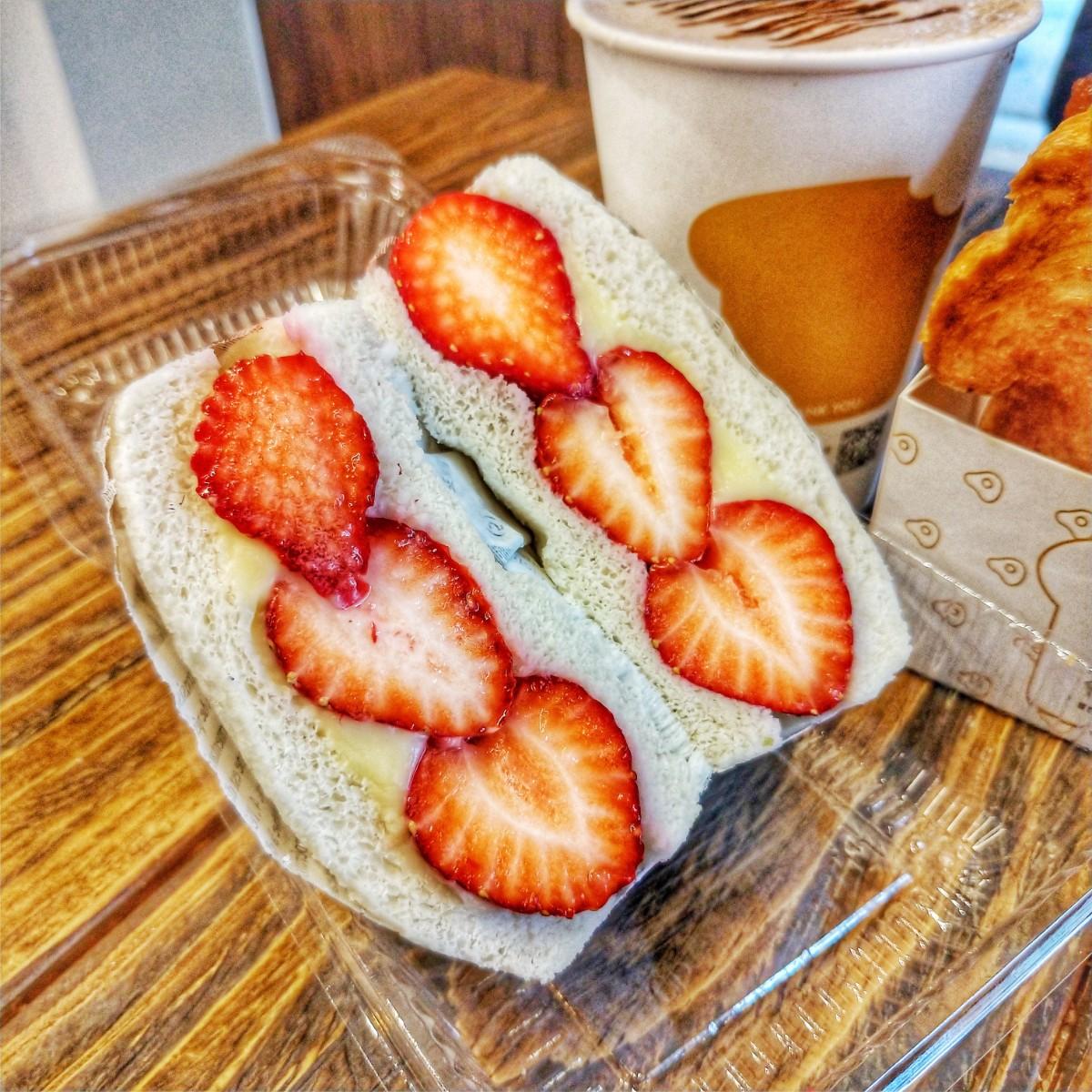 除了鹹的也能來份甜的吐司當下午茶,卡士達不甜膩,加上當季草莓的酸甜,蠻剛好的!好希望可以吃兩個哈哈,實在是吃不夠啦~