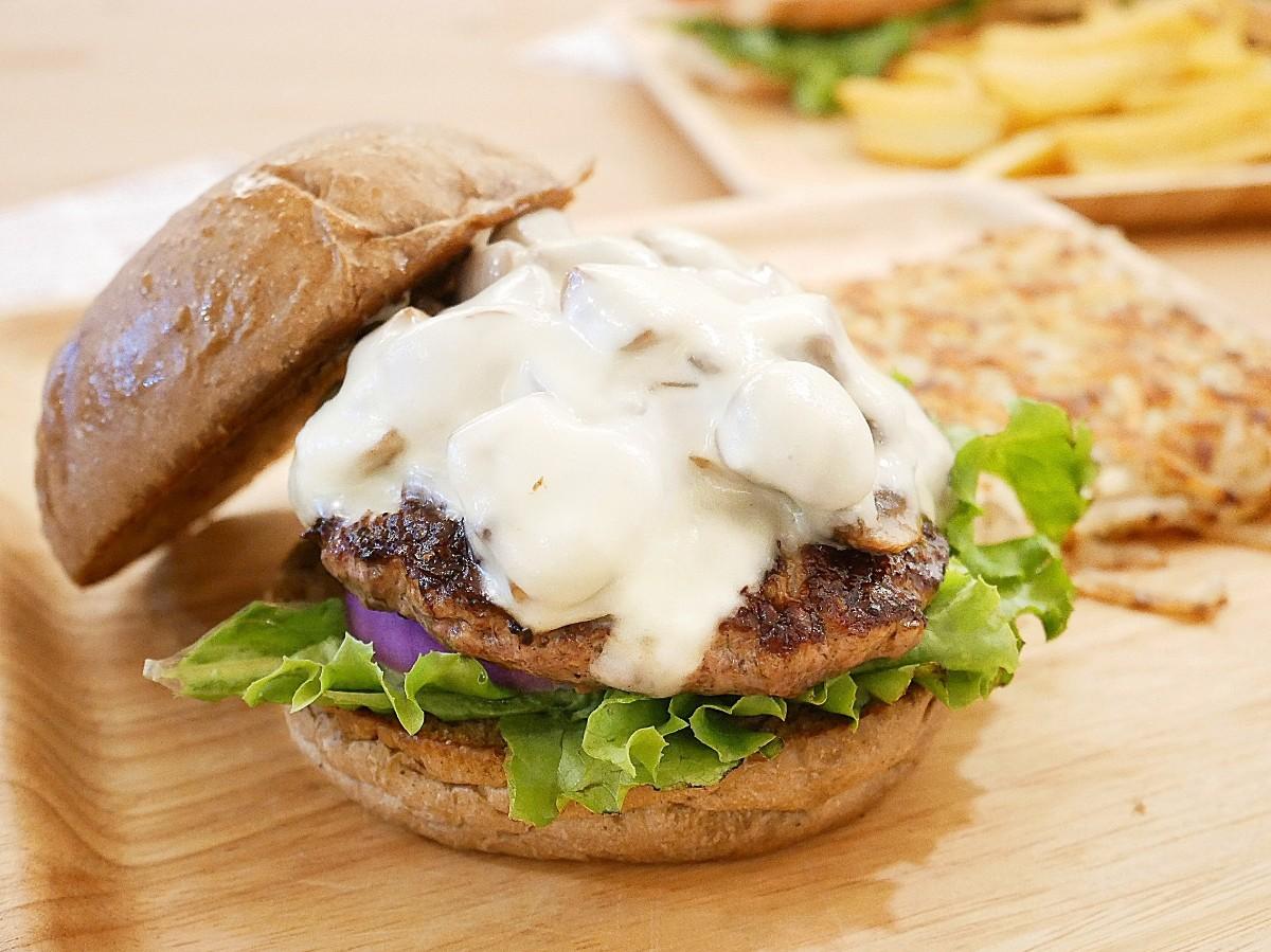 中間加入生菜、番茄等等增加清爽度,蘑菇跟起司搭配在一起口感好棒又鹹香