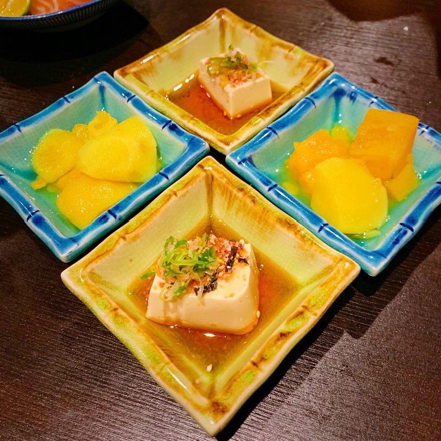玉米筍/海膽烘蛋/可樂餅/鹽烤挪威飛花魚