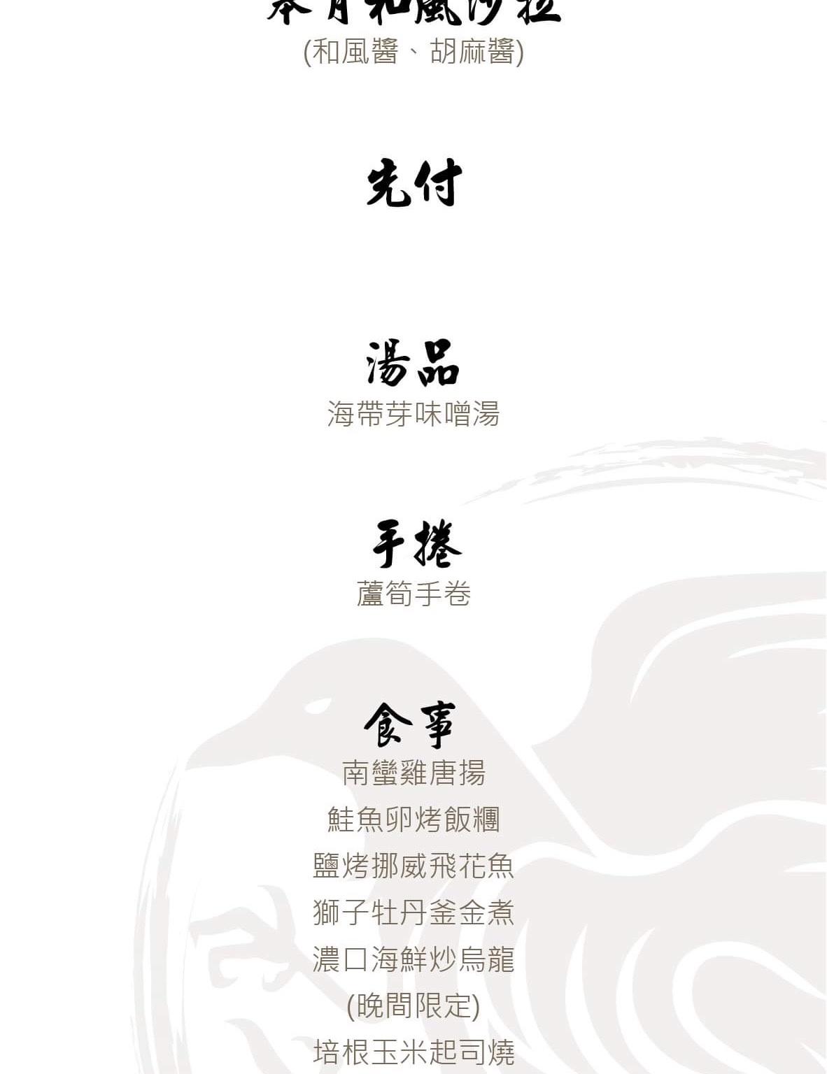 炸物、手卷、沙拉、壽司、湯品、飯麵