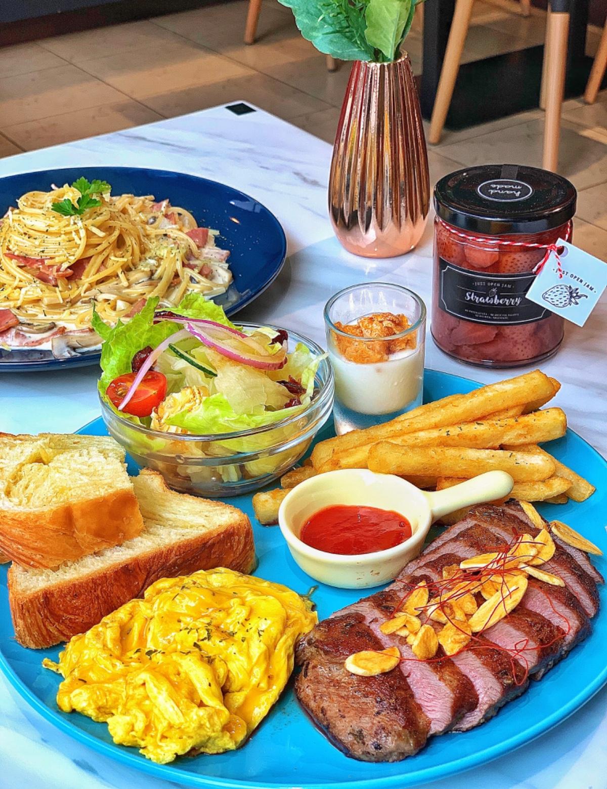 一旁還有丹麥吐司/炒蛋/薯條/沙拉......