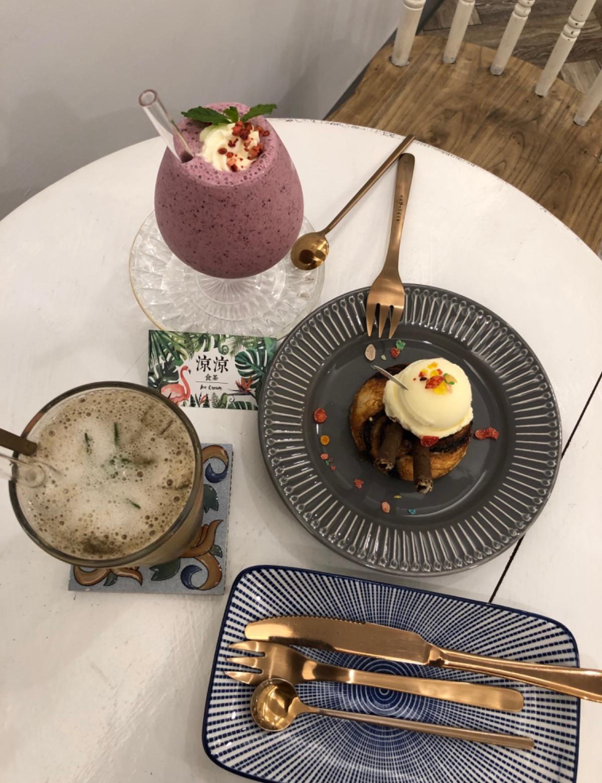 有點熱的天氣冰品是最好的朋友😋 有美美的冰淇淋加上自製甜甜圈=💯 搭配上莓果優格果昔冰沙~~ ☺️☺️☺️舒服~~~~ 有機會來南投草屯真的可以來「涼涼食茶」坐坐喝杯涼的👍👍👍👍 南投草屯口袋清單🧾