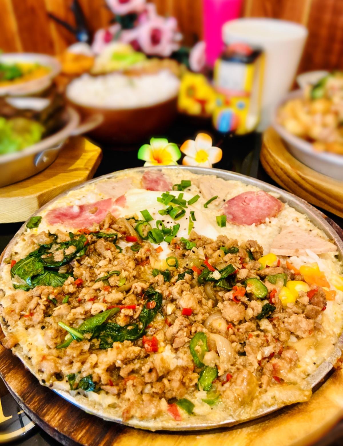 很特別的一道料理,擺盤很精緻,是泰式的鍋巴飯,第一次看到這種泰式料理很新奇,濕潤口感的飯嚐起來很像燉飯,帶有椰奶香的味道加上火腿及香腸,吃起來很有層次感,另搭配由葉子包起來外表酥脆內裡軟嫩帶有股香茅味的斑斕雞,整體組合超豐富~