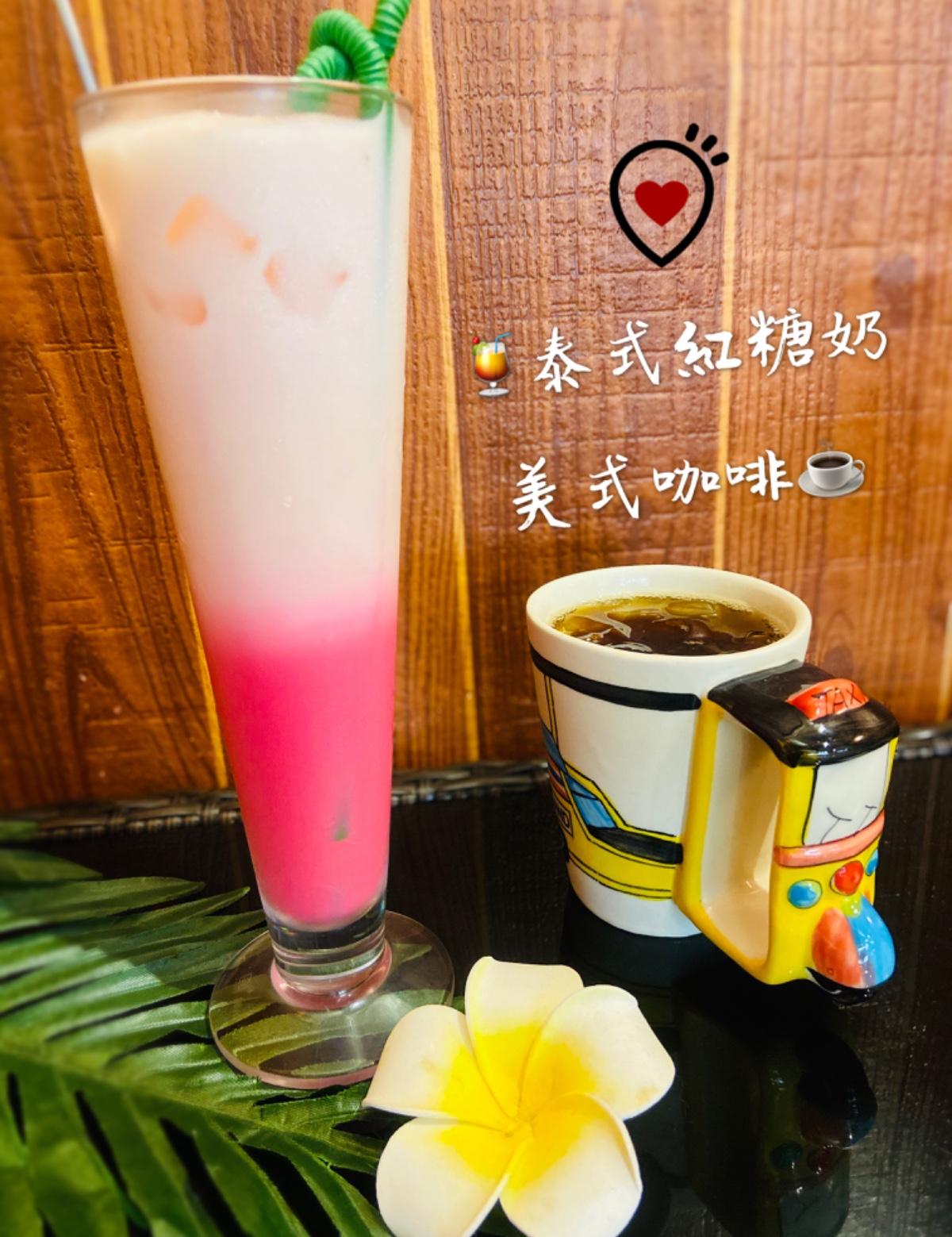 由泰國特有的紅糖水加上煉乳調和而成,看起來鮮豔漂亮的粉色,不過喝起來有點甜😝