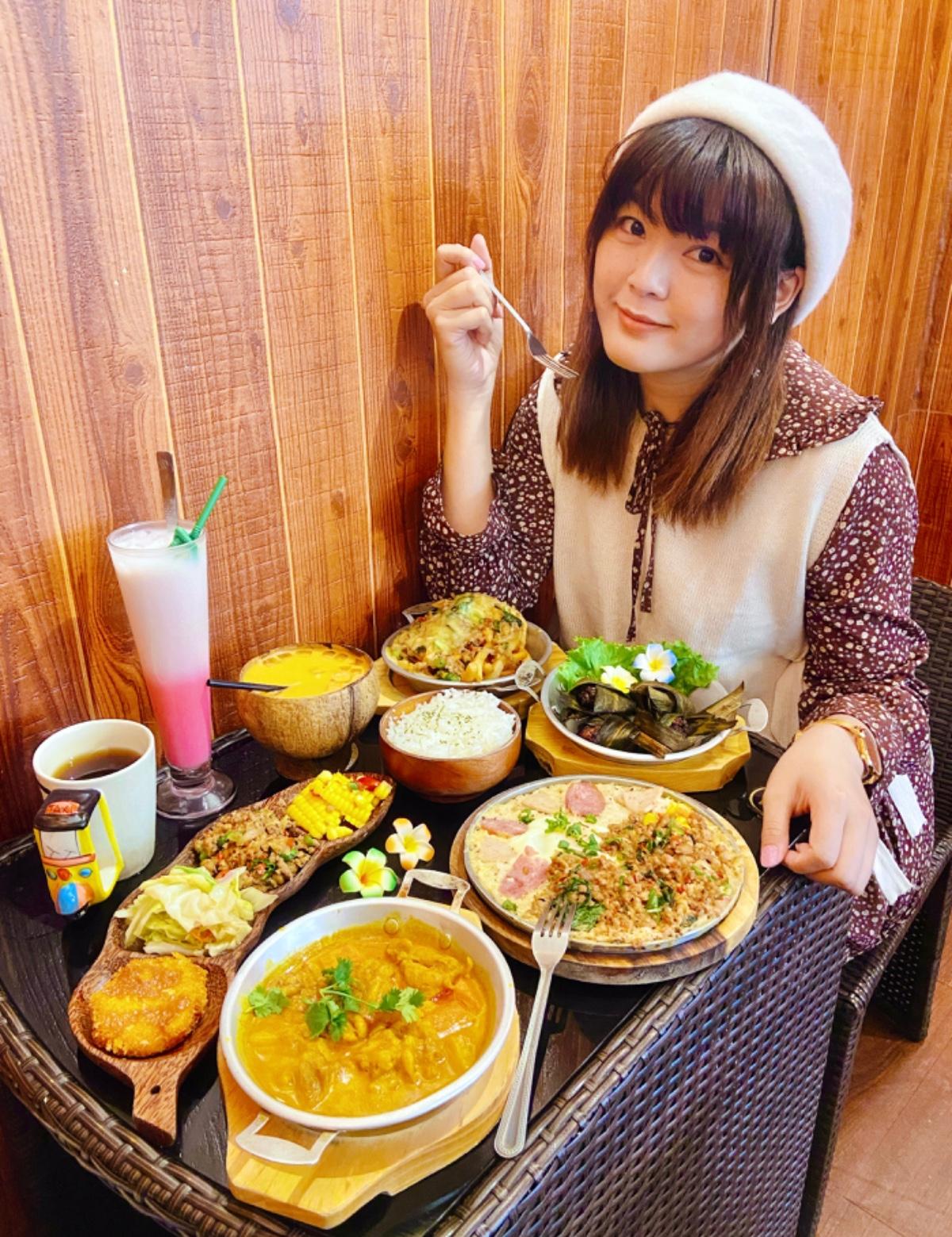 我最愛這一道,每一種配菜(蝦餅、高麗菜、打拋豬、玉米)都蠻好吃的,而雞肉吃起來軟嫩搭配著咖哩醬真到很下飯,每一口都帶有椰奶味,真的很讚👍
