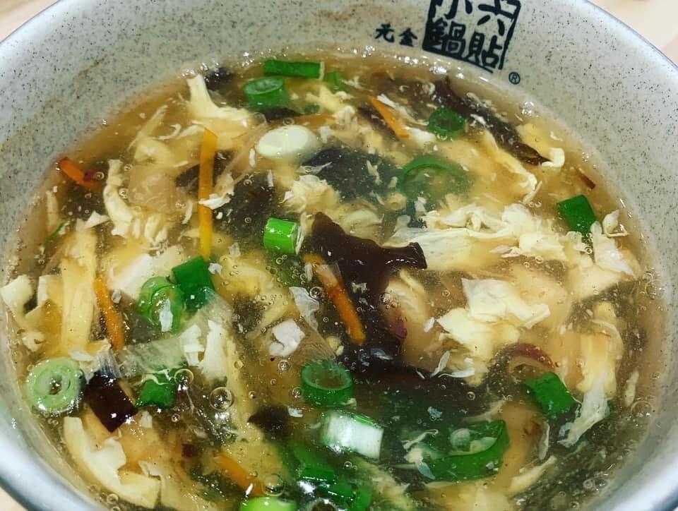 來朝聖😋「小六鍋貼」 鍋貼底部煎的酥脆 湯汁完美包覆在裡頭 噴的我全身都濕了😅 個人覺得美中不足的是 上皮偏軟 我比較喜歡有咬勁的口感 但整體算是好吃的 酸辣湯呢 覺得有點普通 因為個人比較偏重口味