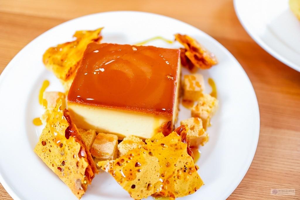 濃郁的奶蛋香氣來自伊思尼動物性鮮奶油,以及南投竹山動物友善放牧森林蛋,口味上選擇不添加香草,更能凸顯優質原物料風味及焦糖香氣,吸滿焦糖的蛋糕底香甜且入即化。