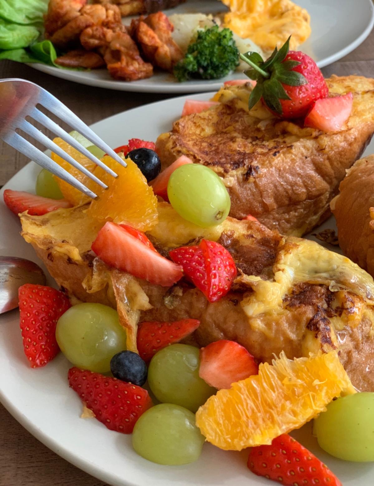 與吸滿蛋奶液&烤過的法國吐司一同入口