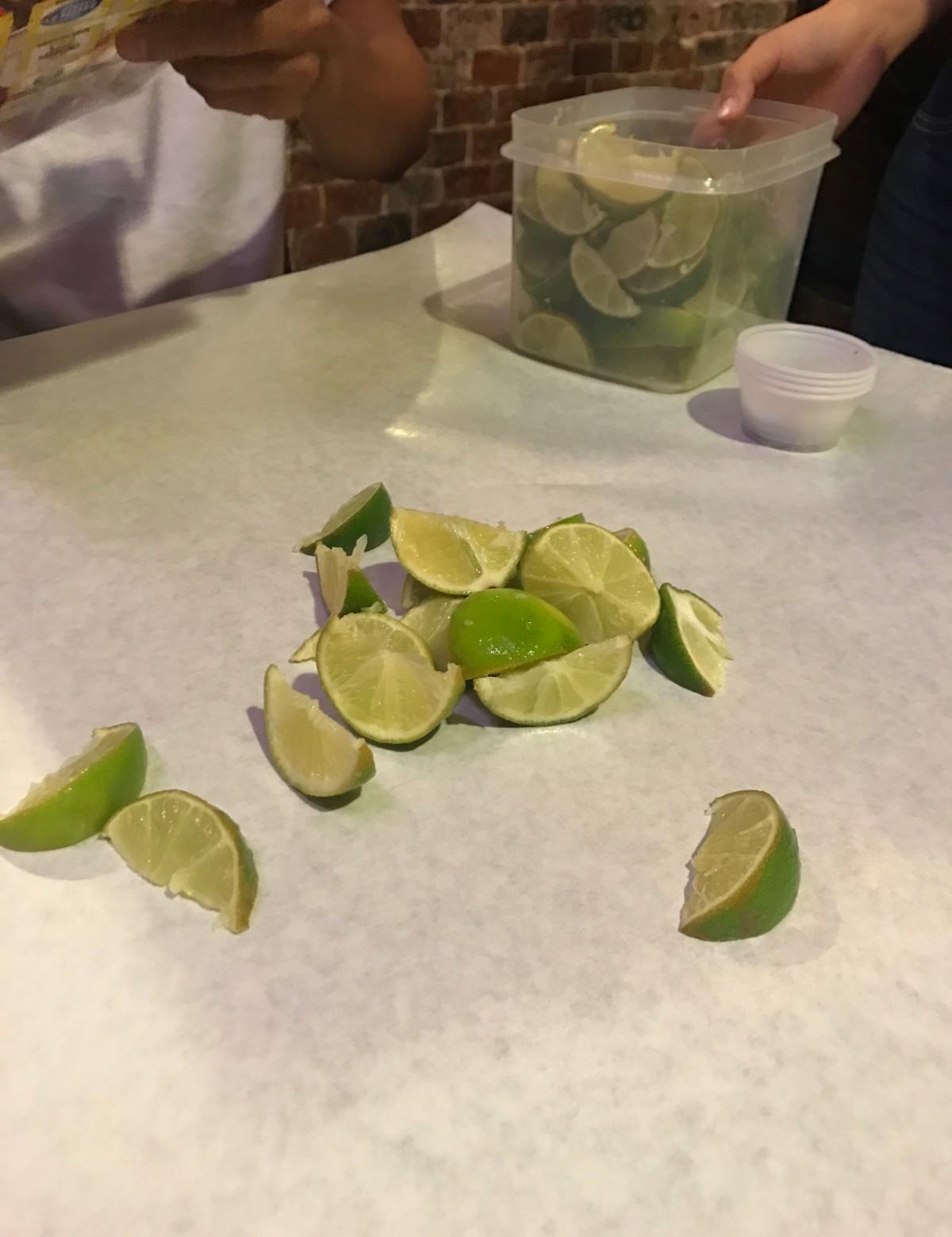 點好餐之後,服務人員會幫你把餐紙鋪好並提供許多檸檬,
