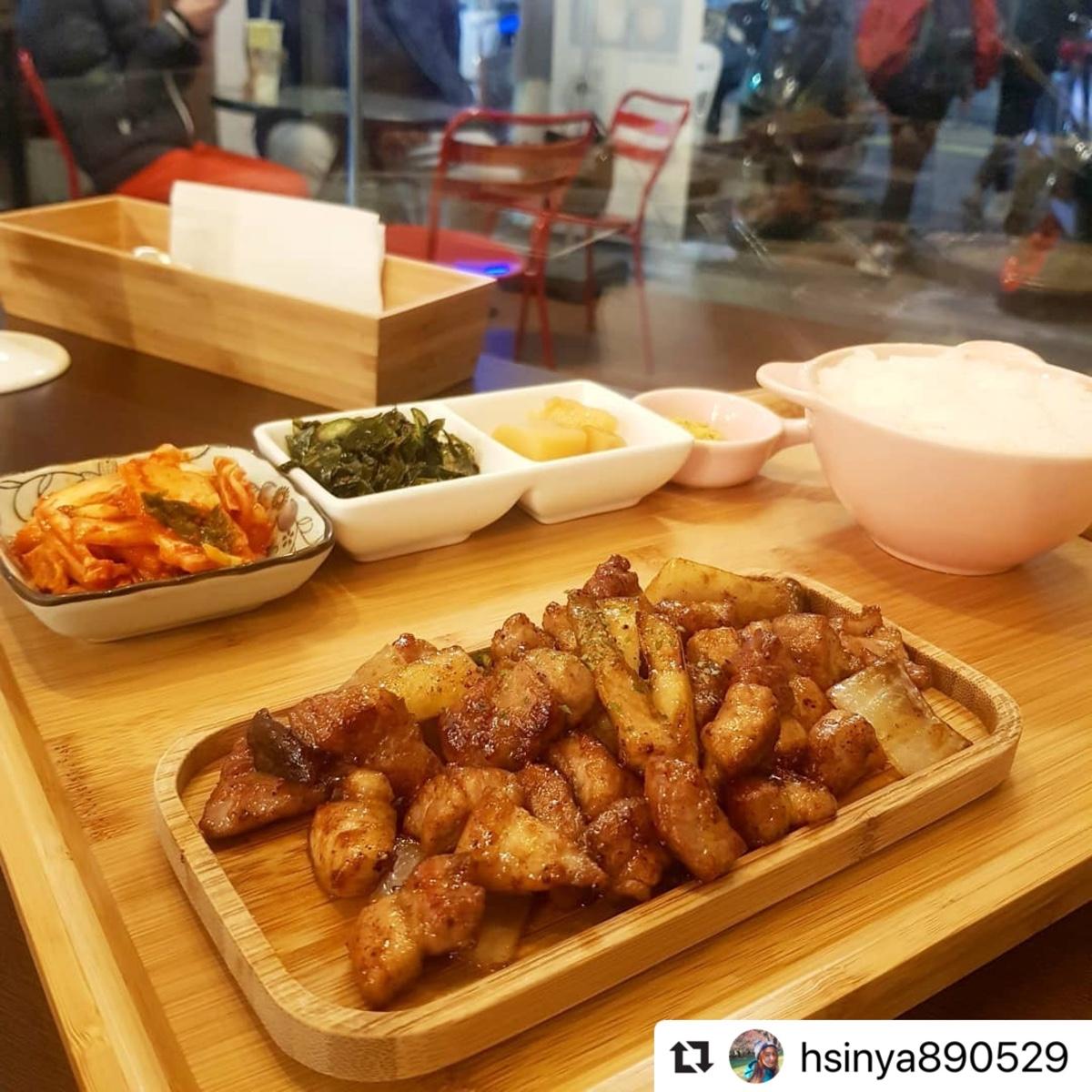 自從在IG看到這間ㄉ推薦文 我就跟林先生唸了一整個禮拜要來吃這間😁來的那天超級餓😵這間店不大 位置也不多 所以我們那天去等了大概一個小時 附近走一走其實也還好啦 不算很久~這間在sogo 後面這條路!蠻好找的~等了一小時我覺得值得啦!東西都很讚 可以說是無雷。 五花肉的部分 我個人覺得原味比較好吃 不太喜歡韓式燒汁 我覺得有三杯的味道(林先生表示:哪有😂)反正我比較喜歡原味啦 很讚!我討厭肥肉 但這間的五花肉我完全可接受👌小菜是無限續的 都很好吃 它有附一小碟的咖哩粉(林先生大愛)連不愛咖哩的我都覺得這個咖哩粉真的很香!半半煎餅是一半泡菜豬肉 一半蝦子青蔥 都好吃~ 魚板湯的湯頭我很喜歡 洋蔥很多😎 我們點這些 真的很飽 超級飽 😵 下次有機會再來個二訪😇 #馬的真好吃🍝🍰🍟 #台中美食