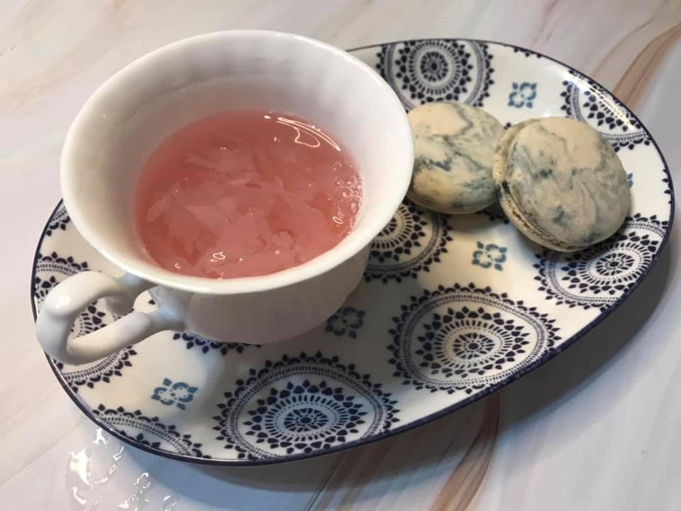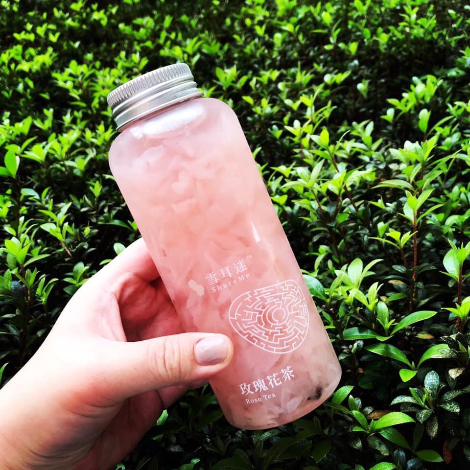 原味的白搭上玫瑰花茶真是非常好看的顏色 賞心悅目的飲料!拿來當作代餐也不為過