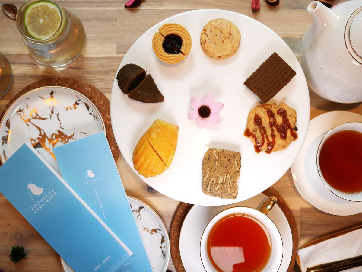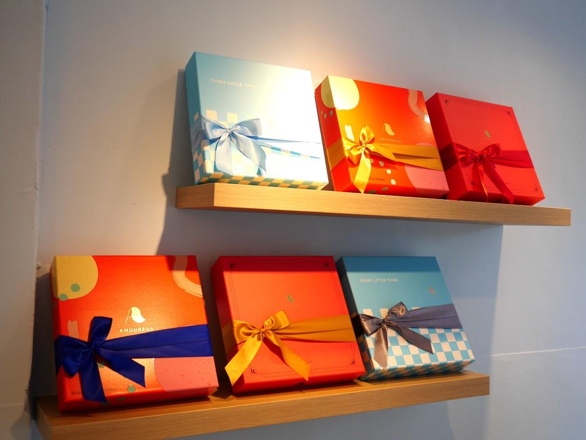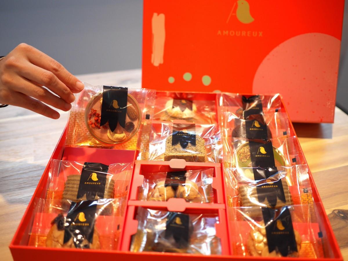 🍽和一般喜餅不同的地方,Amoureux的喜餅提供常溫餅乾、和糕點可以選擇,喜餅禮盒中可自由選擇26種不同口味。禮盒中附上兩包日月潭紅玉紅茶包,質感真的很棒💯!