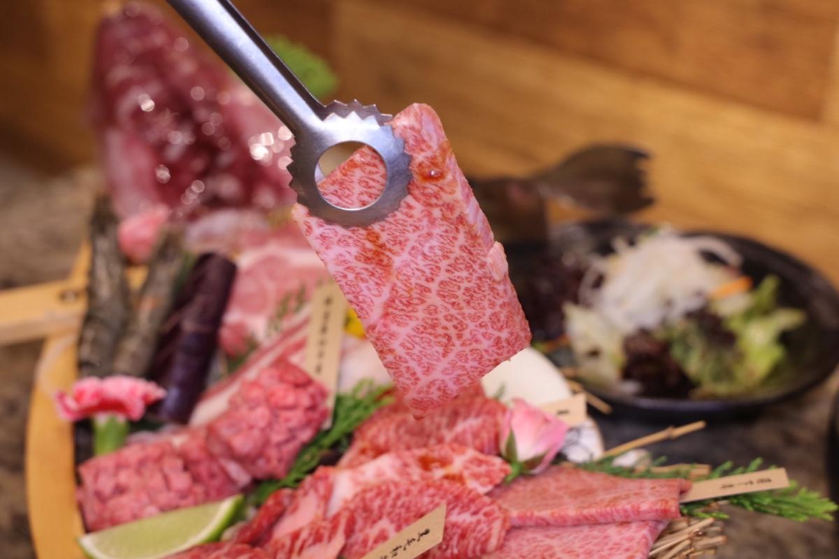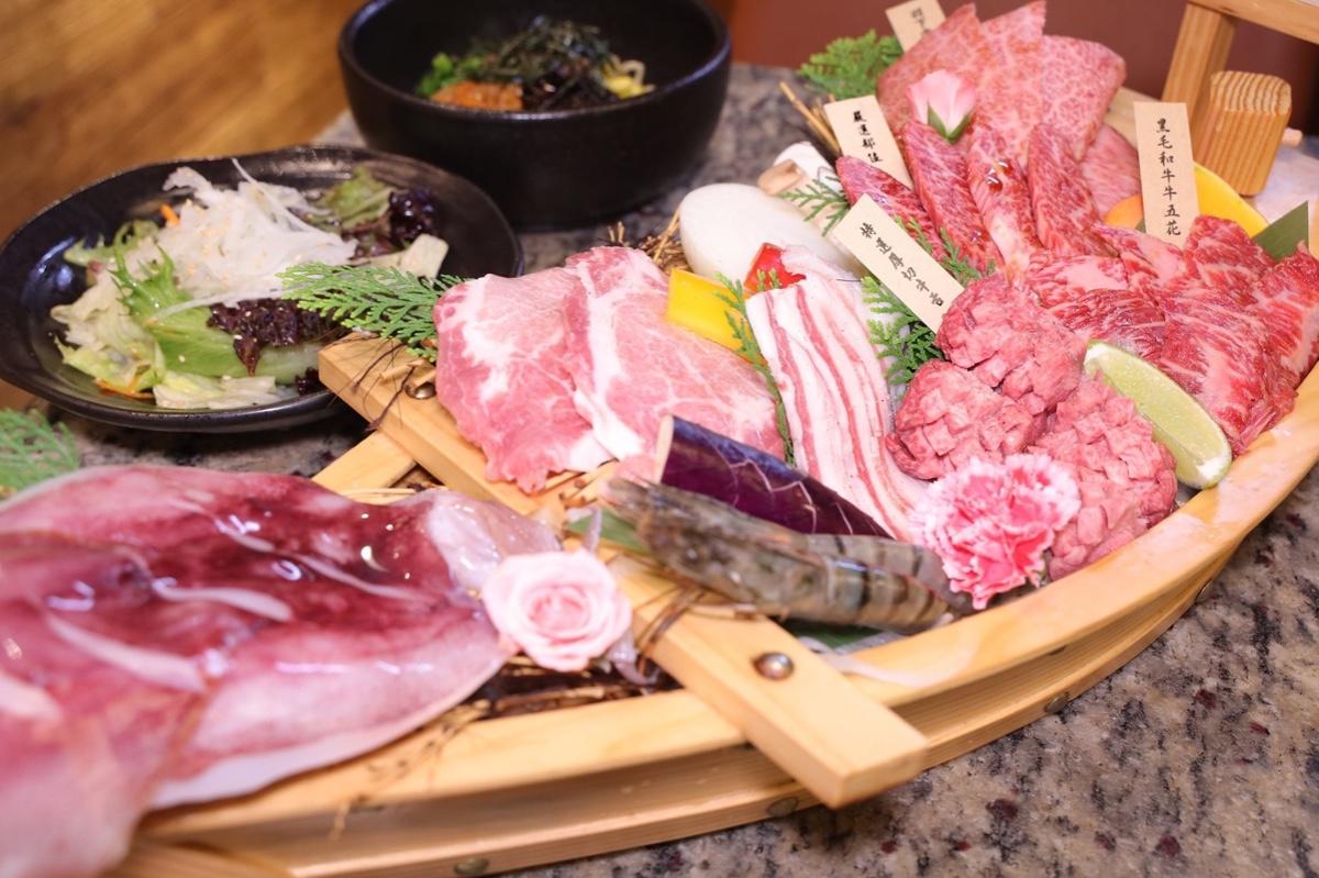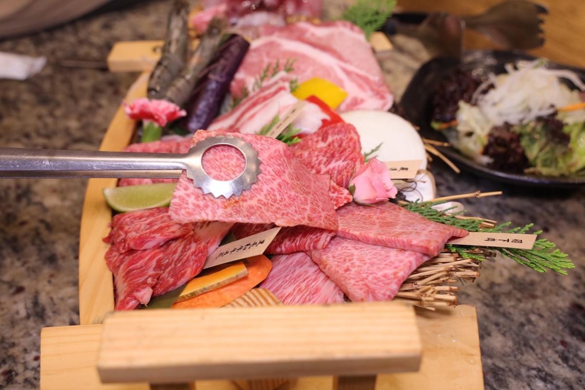 內部有厚切牛舌.精選羽下肉.黑毛和牛牛五花.特上牛五花