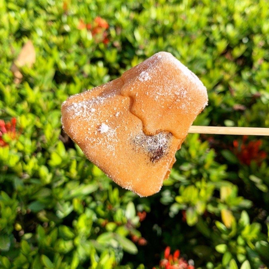不過還是買到了超可愛的富士山雞蛋糕😍現點現做,熱騰騰的口感超棒!裡頭包著我最愛的苦甜巧克力,吃起來味道偏苦,是成熟的味道🥰不過加上上頭撒的糖粉剛剛好,真的是可愛好拍又好吃!