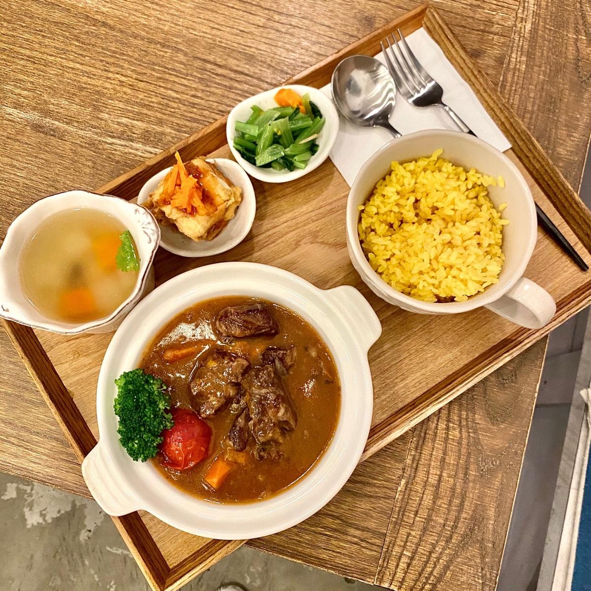 紅酒燉牛肉的飯是薑黃飯 吃起來感覺很健康