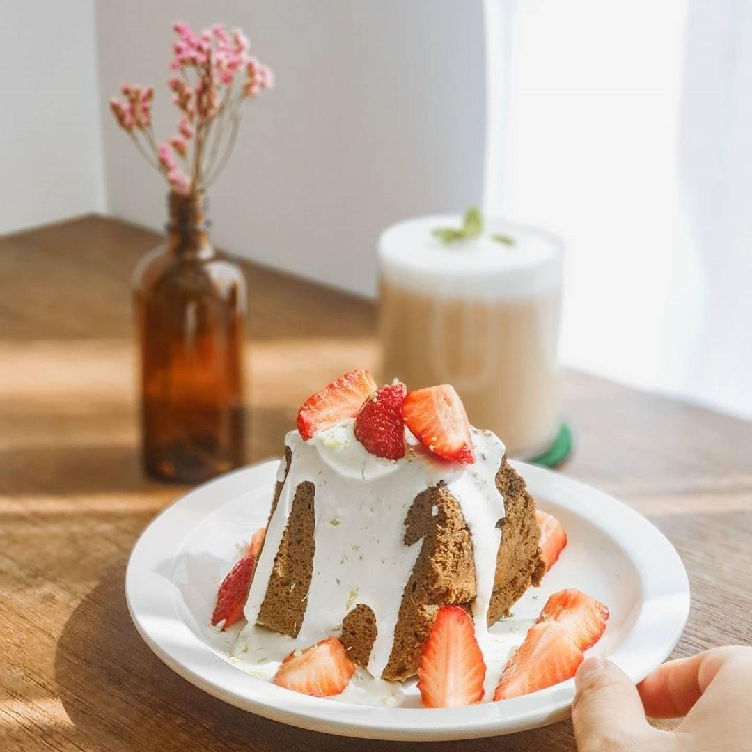 #紅玉拿鐵 #草莓焙茶戚風蛋糕