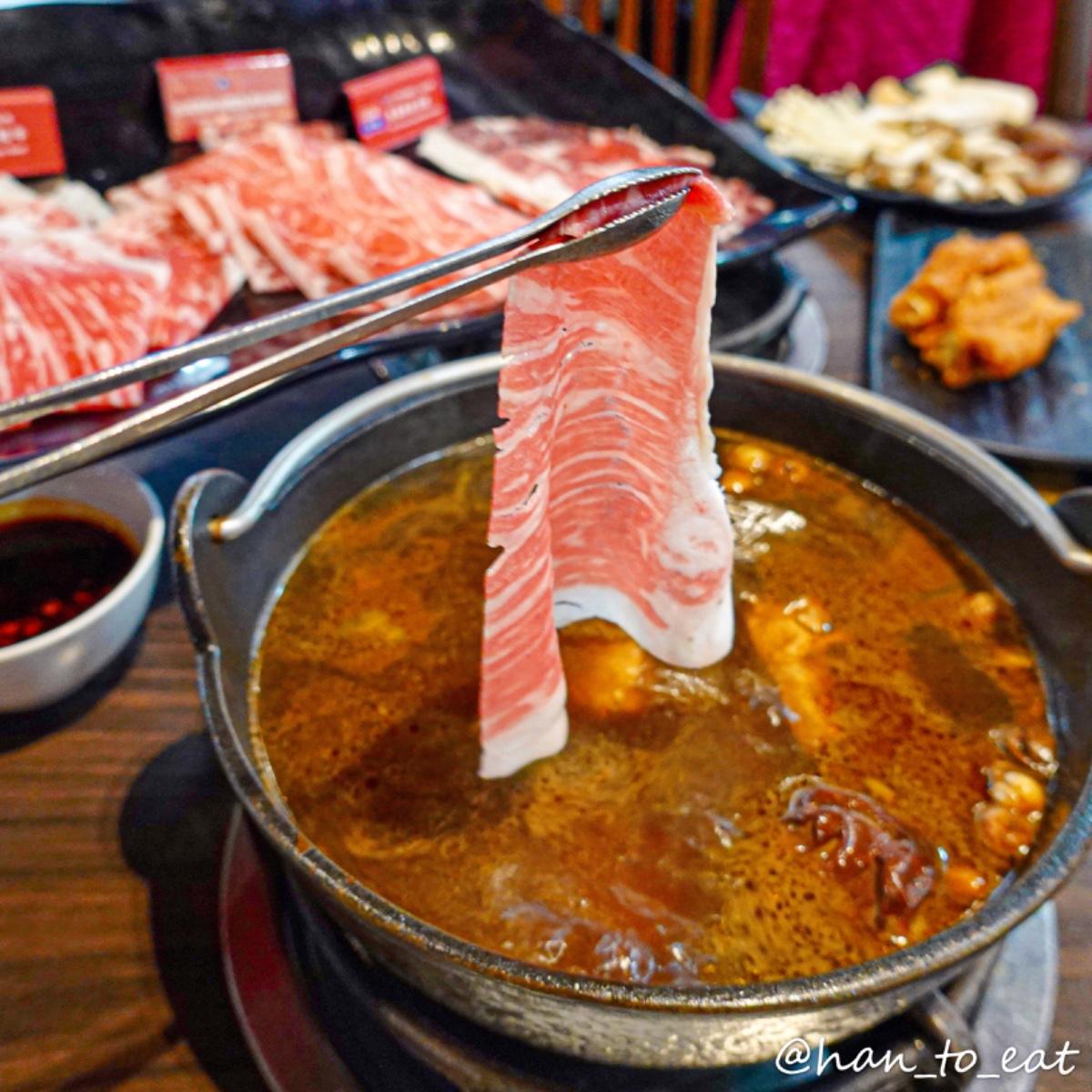 2.由店員加湯,但很久才會推出來一次,真的不太方便。後面麻辣鍋太辣時,我們就自己來回裝熱水自己加湯