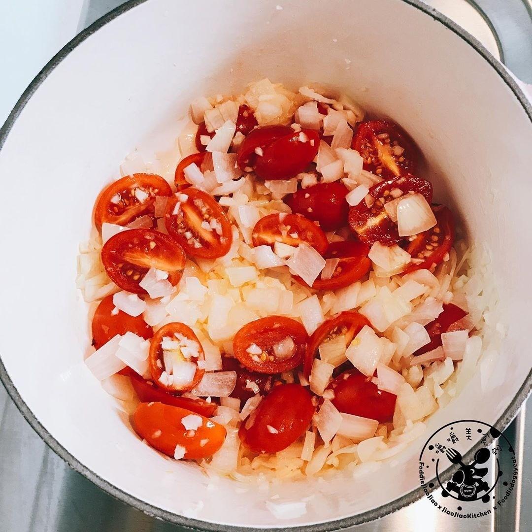 【自己煮美食】--- #嚼嚼蕃茄紅醬洋蔥海鮮燉飯