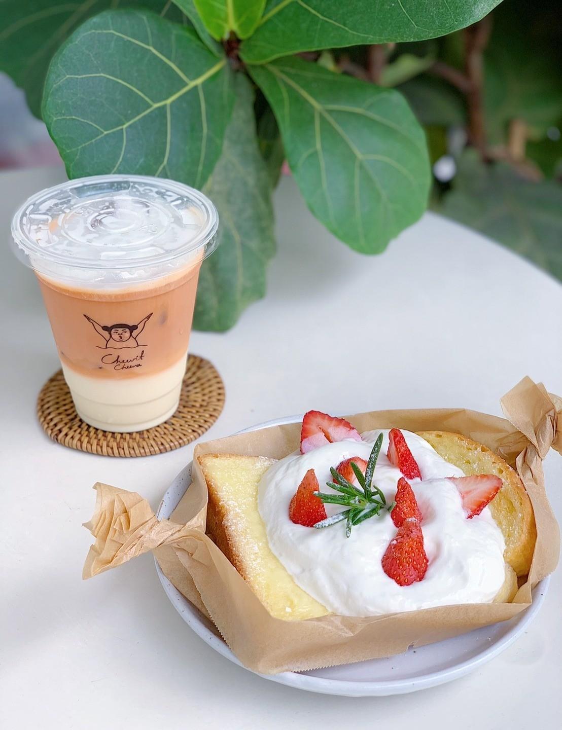 只好放棄冰酥〜點個草莓卡士達吐司與泰奶