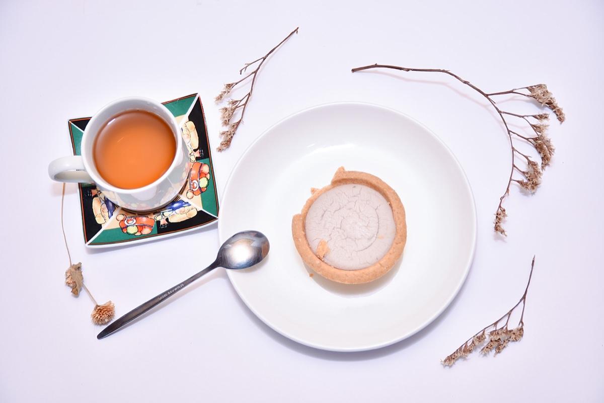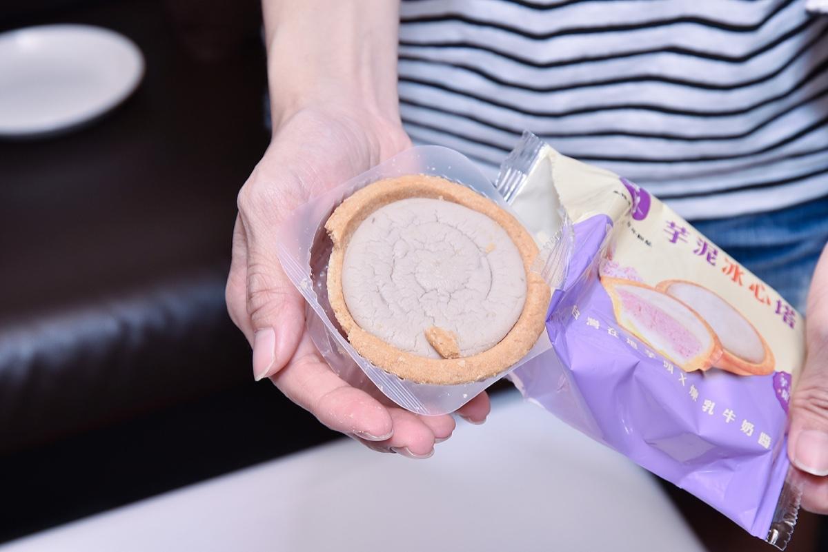 上網查說:用紐西蘭進口奶油製成酥脆塔皮,搭配台灣在地檳榔心芋頭製成扎實芋泥餡,加上煉乳牛奶餡。