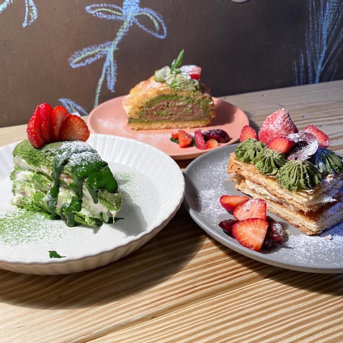 千層酥有香草和抹茶款,千層酥皮艇厚,老樣子又是吃到杯盤狼藉的一份XD 這款抹茶醬只有表層,如果醬再多一點就更好了。