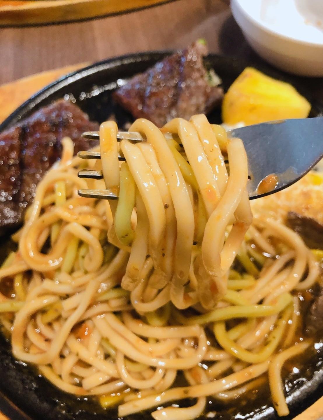 還有一顆美麗得鐵板荷包蛋,整個吃起來很飽(麵還有一半都先挖給男人吃去了XD)
