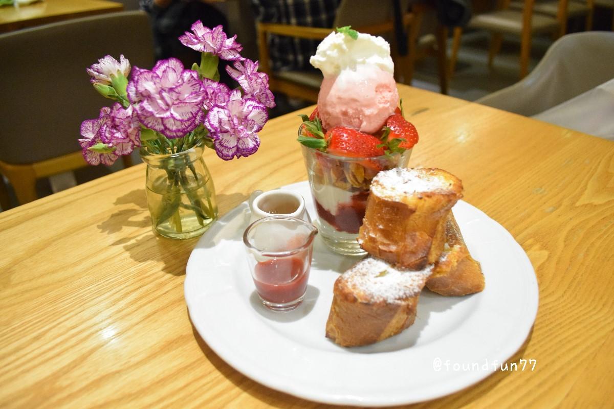 蛋奶香氣濃郁,加上草莓醬與楓糖滋味更難忘。