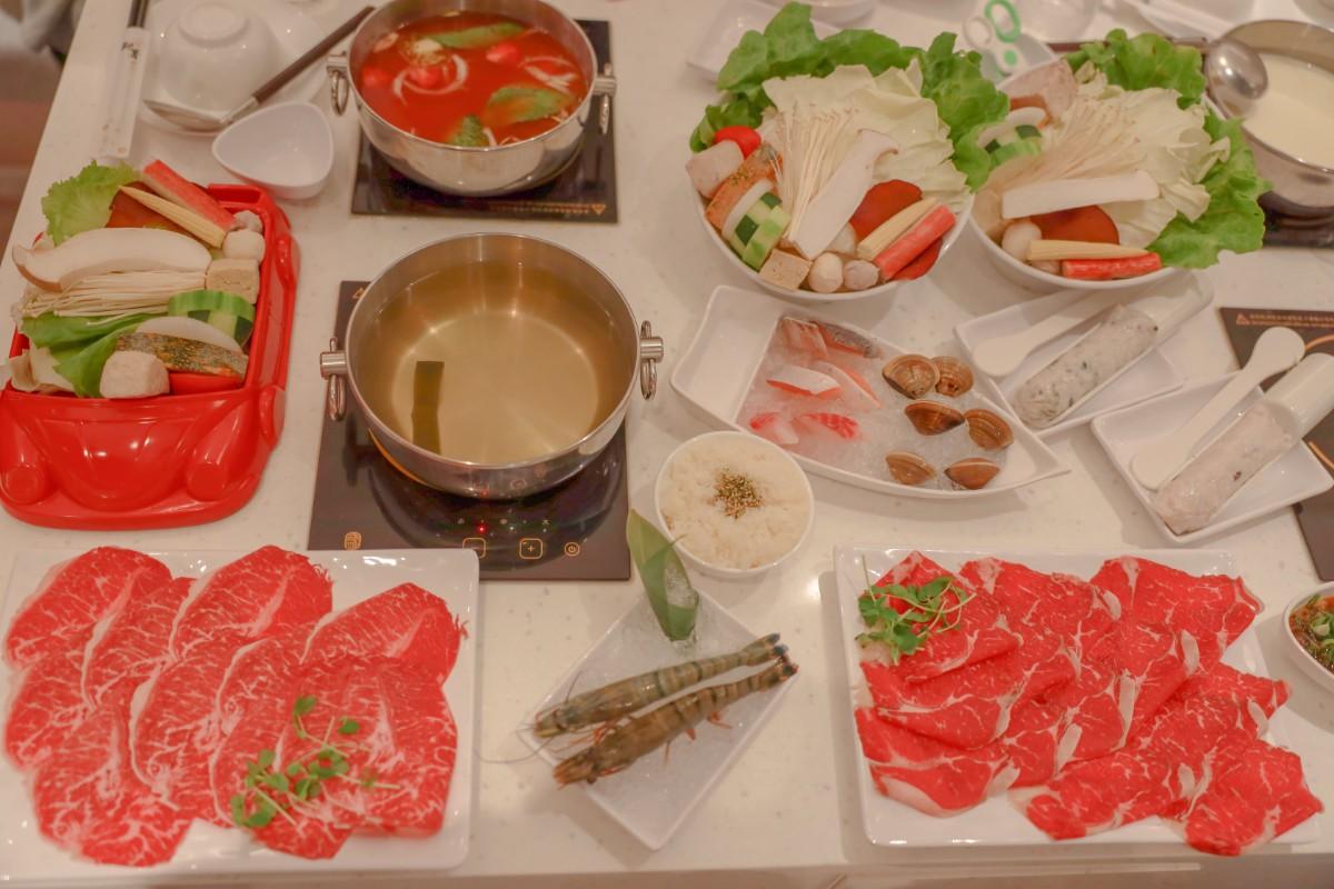 原味的昆布柴魚蔬菜湯、義式風味番茄鍋+$66、日式牛奶味噌鍋+$99