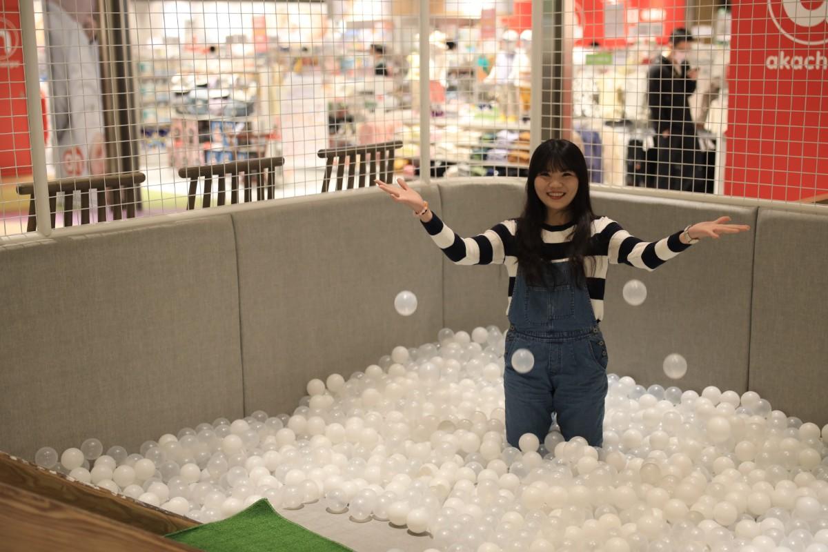 純白的球池,連大人都想玩一下了