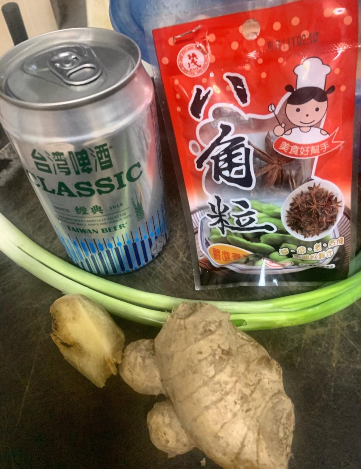 雞肉-半隻、薑-10片、蒜-6辦、花椒-兩支、香菇-5朵、洋蔥-半顆